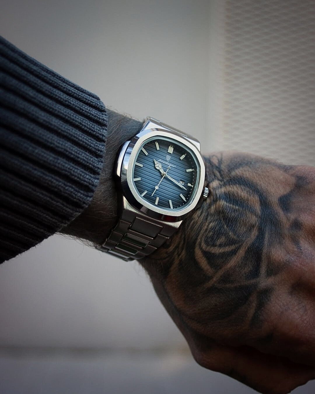 Die Uhr fühlt sich solide und stilvoll an und ist deutlich teurer, als sie tatsächlich ist. Die Lieferung nach Deutschland verlief reibungslos und schnell, und die Verpackung sah wirklich hochwertig aus. Ich trage sie jetzt seit einem Monat täglich und sie sieht immer noch wie neu aus.